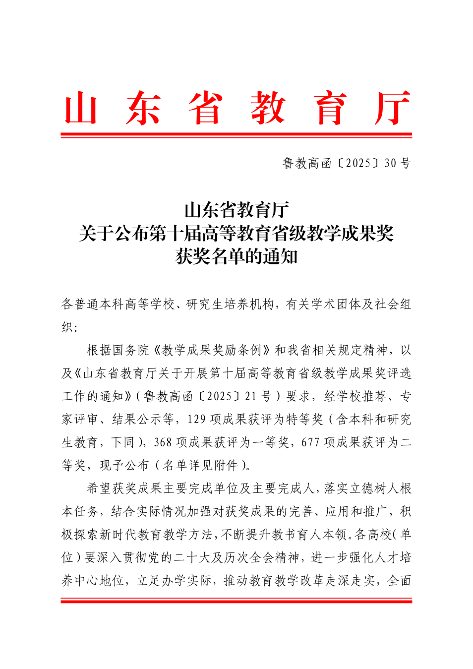 日前,山东省教育厅正式公布第十届高等教育省级教学成果奖获奖名单。yl7703永利集团作为第一完成单位申报的教学成果《认证驱动、产教融合、赛创共生,面向智能制造类人才培养...