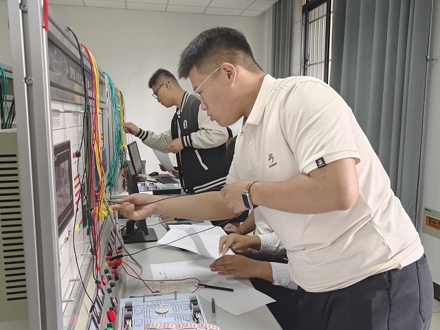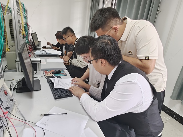 穿梭在赛场之中,你会看到每个小组忙碌的身影,会看到一条条复杂的线路,一张张写满的卷纸,各个选手们都在积极准备着他们的设计,展示他们的风采。所谓“内行看门道”,评委老师们时不时在一台机器面前驻足,对参赛同学们的表现既有眉头紧皱的不解,也有洋溢微笑的肯定。举手投足间流露出对本次参赛同学的认可。