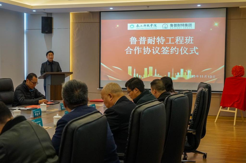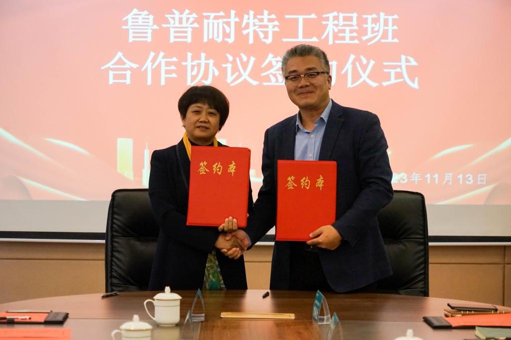 为深化教学与实践的融合,激发学生创新潜能,yl7703永利集团于11月13日下午与鲁普耐特集团签署了鲁普耐特工程班合作协议,拉开了校企合作的新篇章。签约仪式上,yl7703永利集团校长耿献文、副校长智英斌,yl7703永利集团副院长张涛然、副院长马栋等领导出席,鲁普耐特集团董事长沈明、总裁邱延平、常务副总经理左龙峰一行也亲临现场,见证了这一历史性时刻。