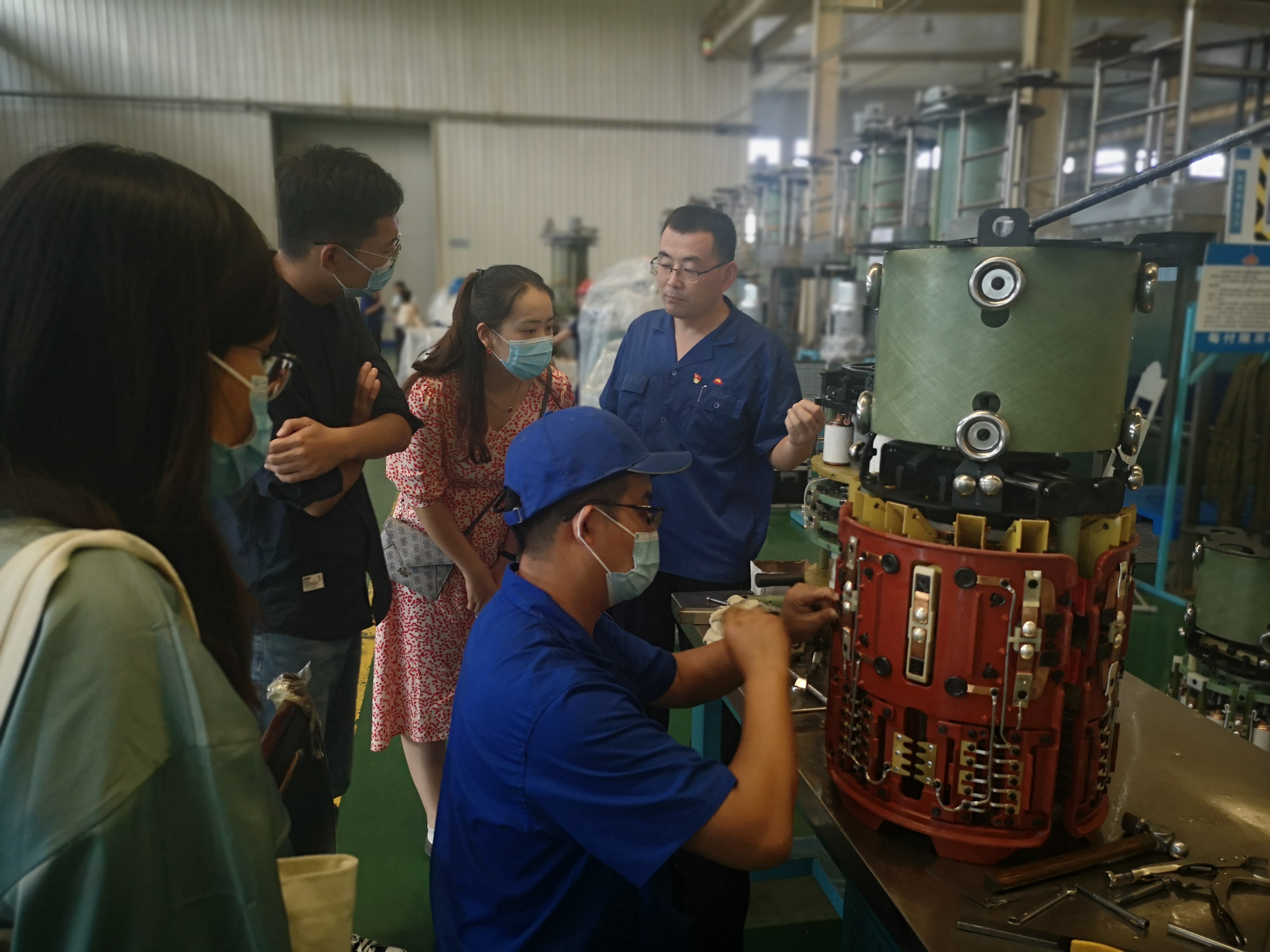 交流座谈后,在泰开电力设备有限公司领导的带领下,我校教师代表前往公司车间进行了实地参观,对公司的产品、工作环境和工作模式有了更直观地了解和认识。公司员工在现场详细地解答了老师们提出的各类问题,他们先进的技术、整洁的工作环境、工人们熟练的操作令人瞠目结舌、赞不绝口。