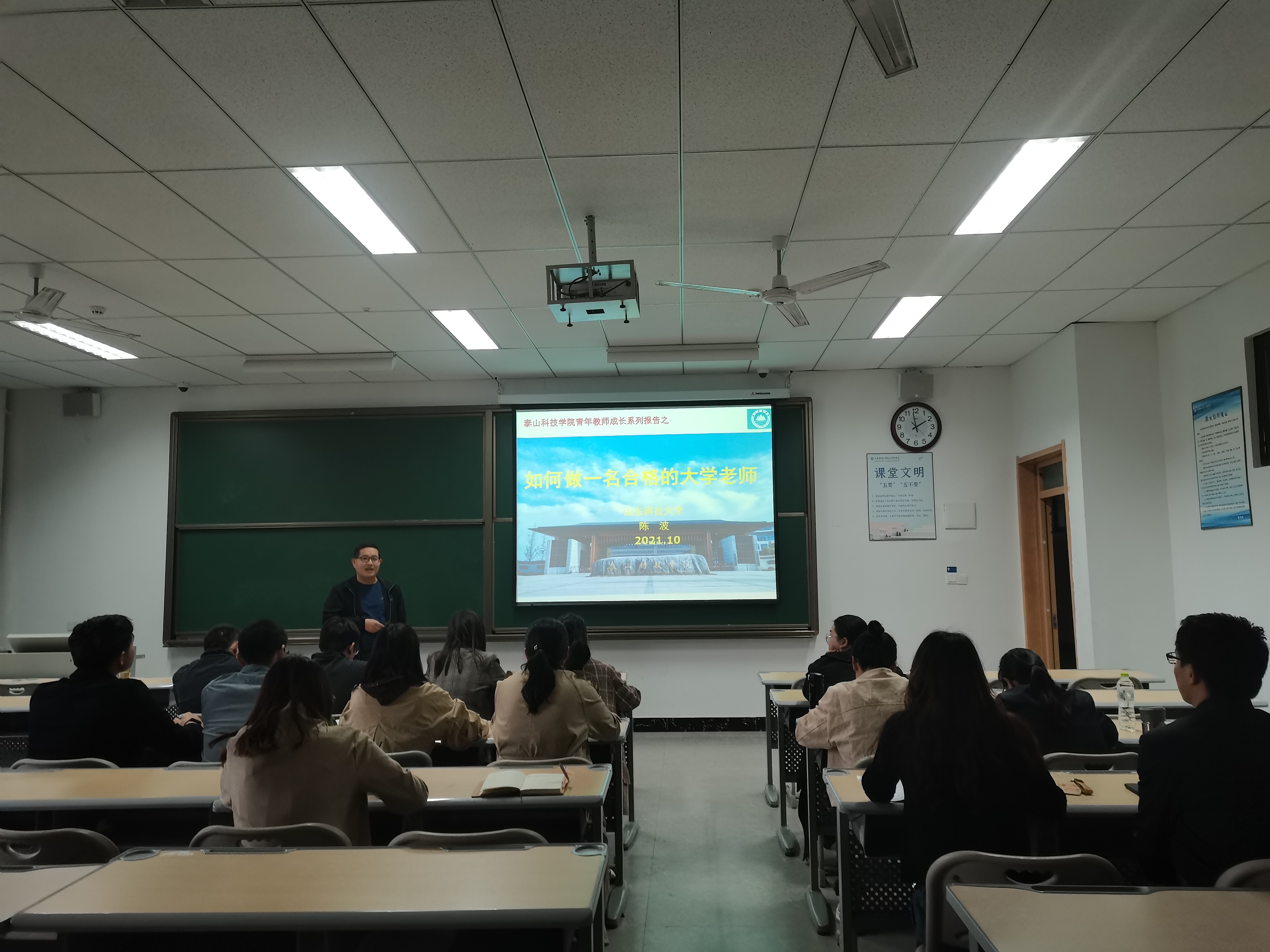 最后陈教授结合自身的发展轨迹及自身的教学感悟和青年教师们分享了一名合格的大学教师的成长过程和必要条件,并给出个人体会和宝贵的指导建议。陈教授指出,如何做一名合格的大学教师,如何在教师这个岗位上体现出自己更高的人生价值,是每个教师终生的答卷,要把做一名好老师作为终生的奋斗目标。陈教授鼓励青年教师们要在年轻的时候努力奋斗,在泰科激情燃烧自己的青春,早日成长为优秀的大学教师。