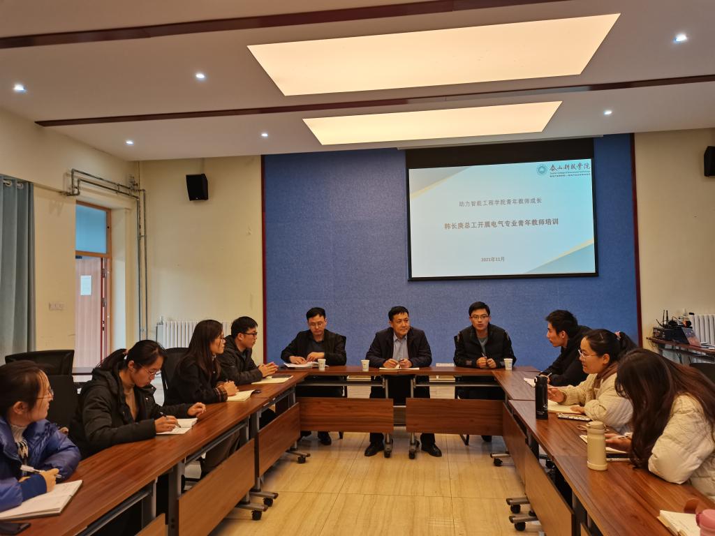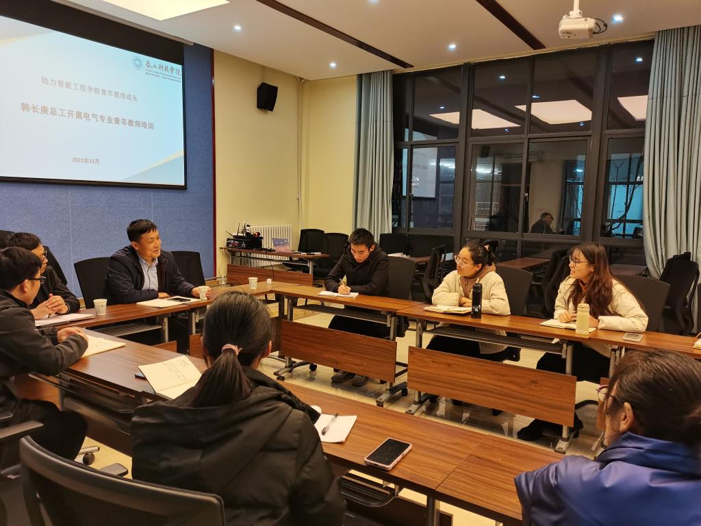 11月25日下午,yl7703永利集团邀请泰开集团韩长庚总工和李峰主任为我院电气专业青年教师作了一场“助力青年教师成长”的专题讲座。学院张涛然副院长主持讲座,yl7703永利集团电气专业全体青年教师参加。