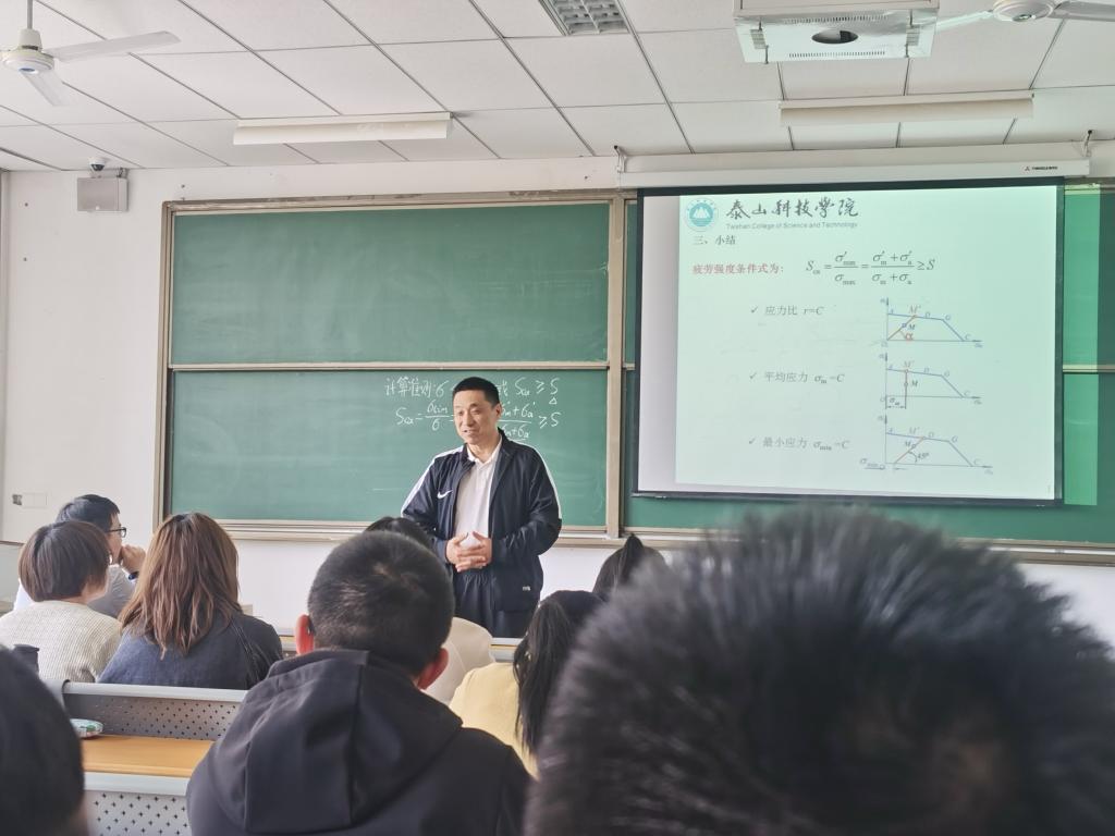 然后,由王恒帅老师讲授了“受单向稳定变应力时机械零件的疲劳强度计算”。在授课中,王老师注重学生对知识点的回顾,同时通过提问引发学生们的思考,导入新课,做到前后贯通。