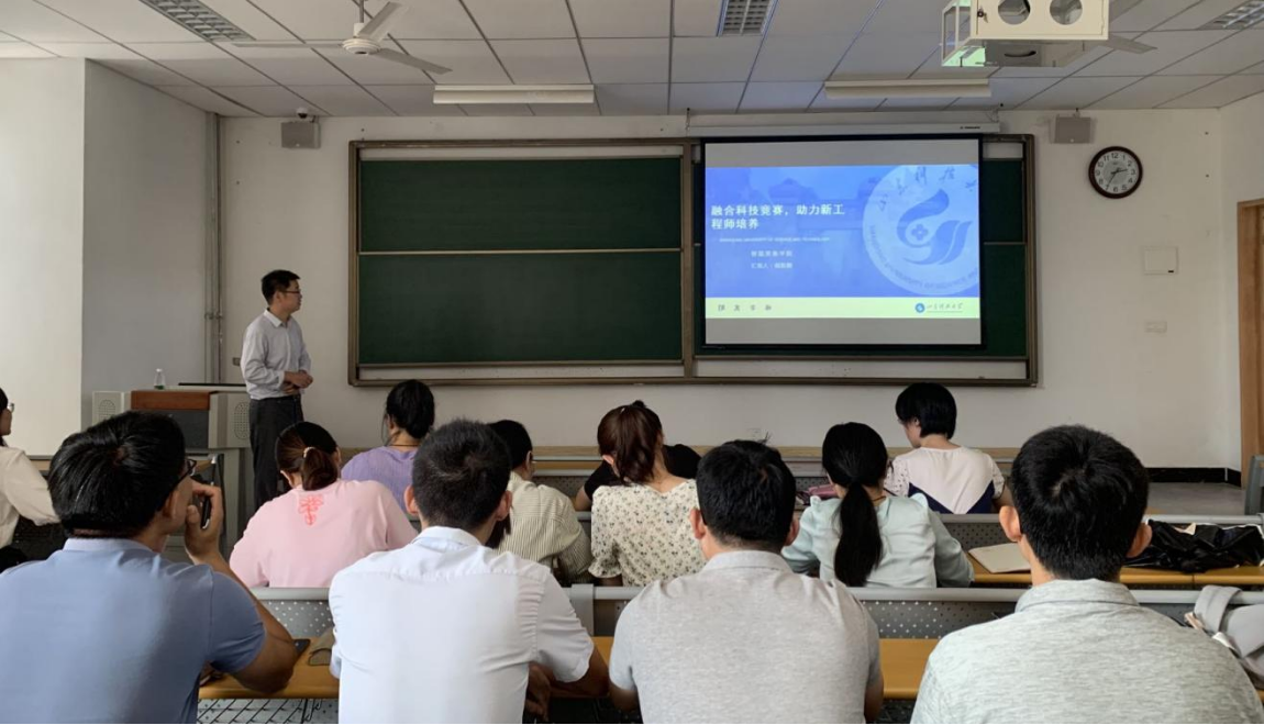 胡教授主要从“新工程师应具有的能力”、”如何培养参赛团队”、“所参加的主要科技竞赛介绍”、“学科竞赛未来打算”四个部分做了细致讲解。