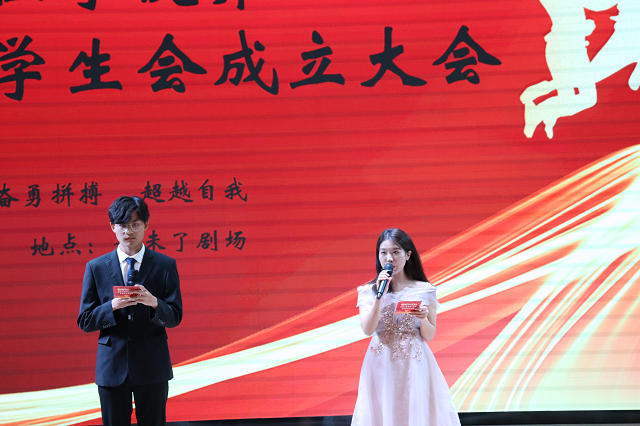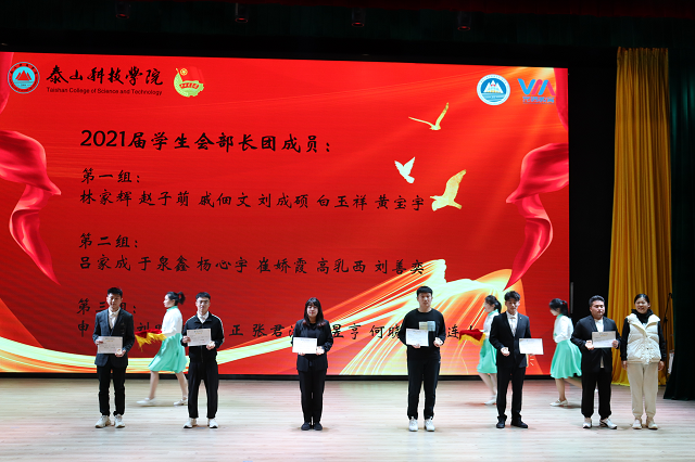 yl7703永利集团辅导员赵金晓宣读《关于任命yl7703永利集团第二届团总支·学生会成员的决定》文件。话筒里传出的每个学生干部名字的声音,屏幕上出现的每个干事的名字,都代表着一份责任、一份新生力量,满满的仪式感,让学生会的成员都找到了归属感,充满感动。