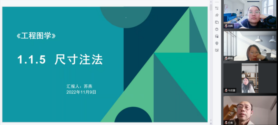最后是公开课讲授环节,本周教学公开课由机电工程教研室苏燕老师讲解“尺寸注法”。从课前知识回顾到正式授课环节再到对本节内容进行总结,并在最后进行了课后反思,整个授课环节非常完整。授课过程中结合相关实践经验对知识点进行详细的讲解,并借助白板工具进行尺寸标注演示,达到非常好的课堂效果。徐学忠教授、娄玲玉、宋晓波、刘增强等几位老师分别进行了点评,一致认为苏燕老师课堂节奏把控非常好,讲课流畅,生动有力,并注重理论与实践的相结合,但需注重课件质量的进一步提高。