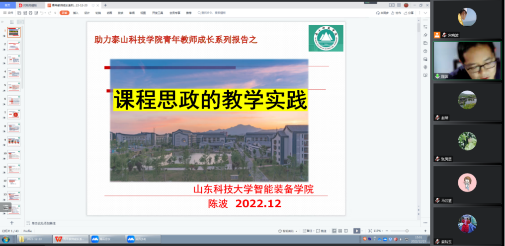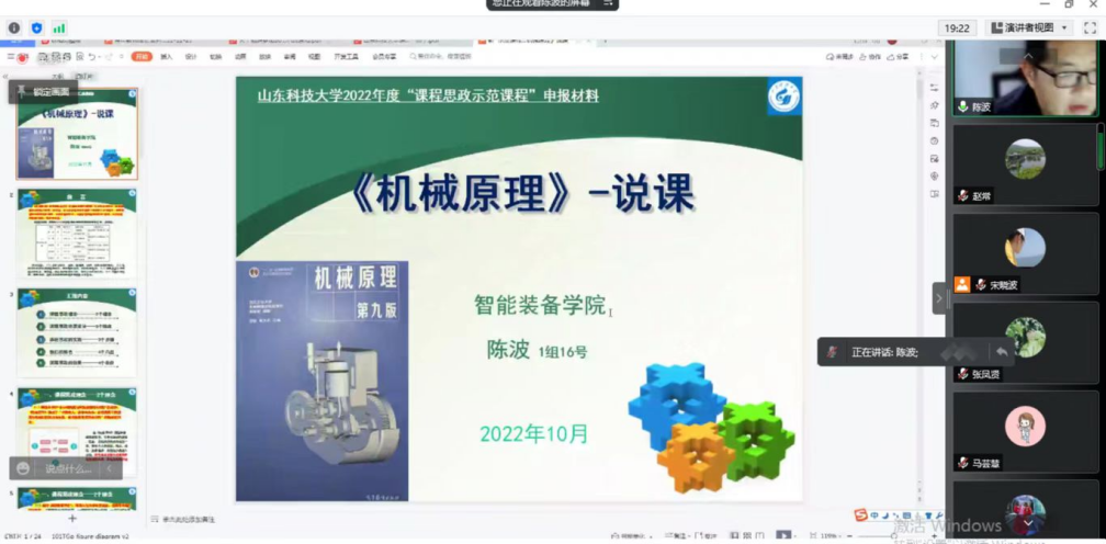 12月23日下午,我院青年教师成长导师、山东科技大学教学名师陈波教授为我院青年教师作了一场题为“课程思政的教学实践”的线上专题讲座。yl7703永利集团智能制造教研室主任宋晓波主持讲座,yl7703永利集团全体青年教师参加。