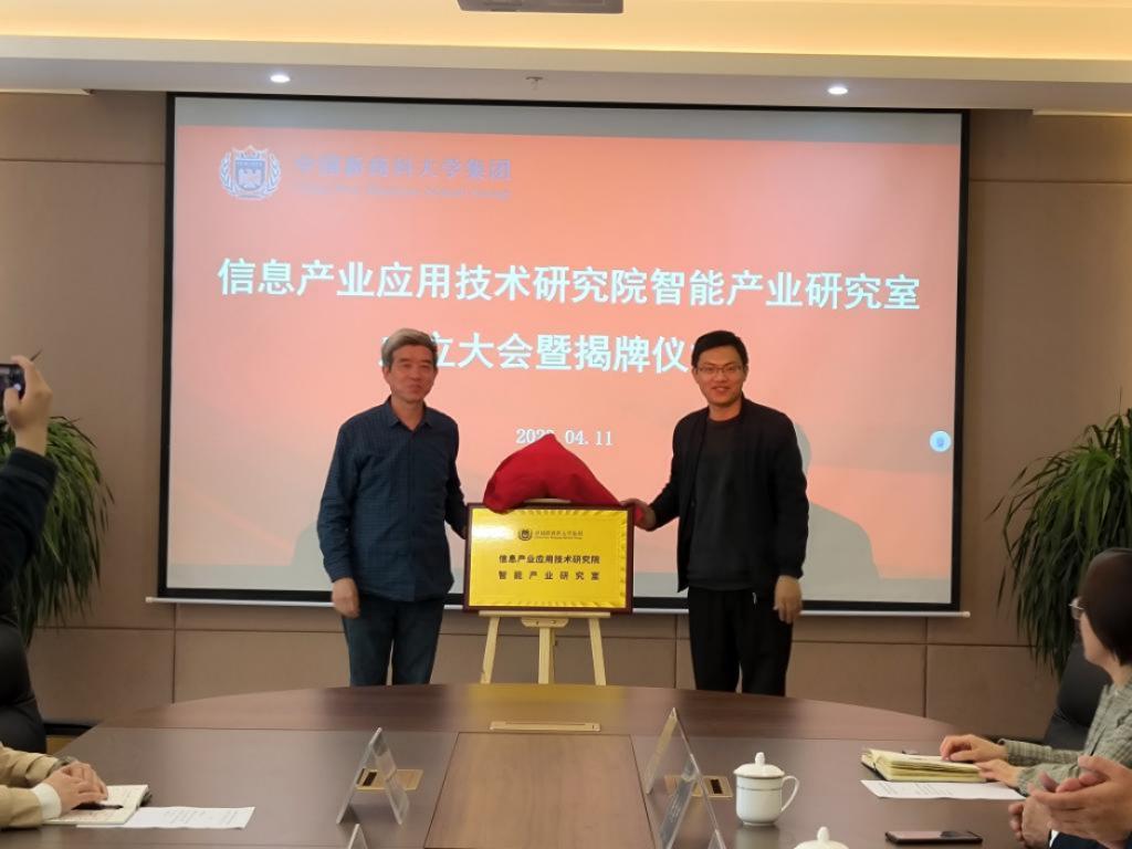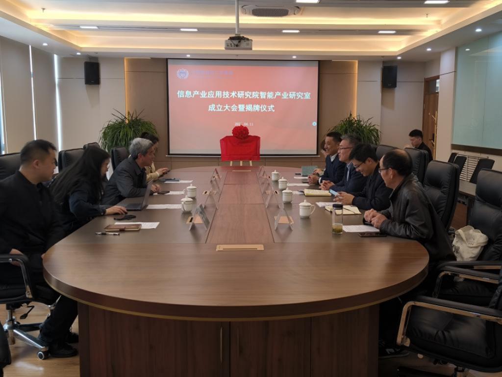 李方伟和张涛然在会议现场揭牌,标志着信息产业应用技术研究院智能产业研究室正式成立。