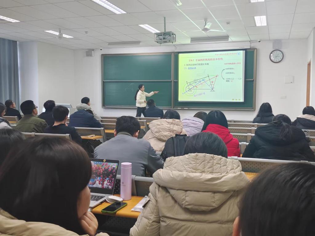 首先,由孙太荣老师主讲本次公开课。孙老师以机械原理中的“平面四杆机构的基本特性”为内容,详细讲解了急回特性基本概念和形成机理,通过分析不同机构的运动过程,展示了急回特性在优化机械性能方面的作用,借助生动的实例和模拟演示,展示了急回特性在现实生活中的应用。