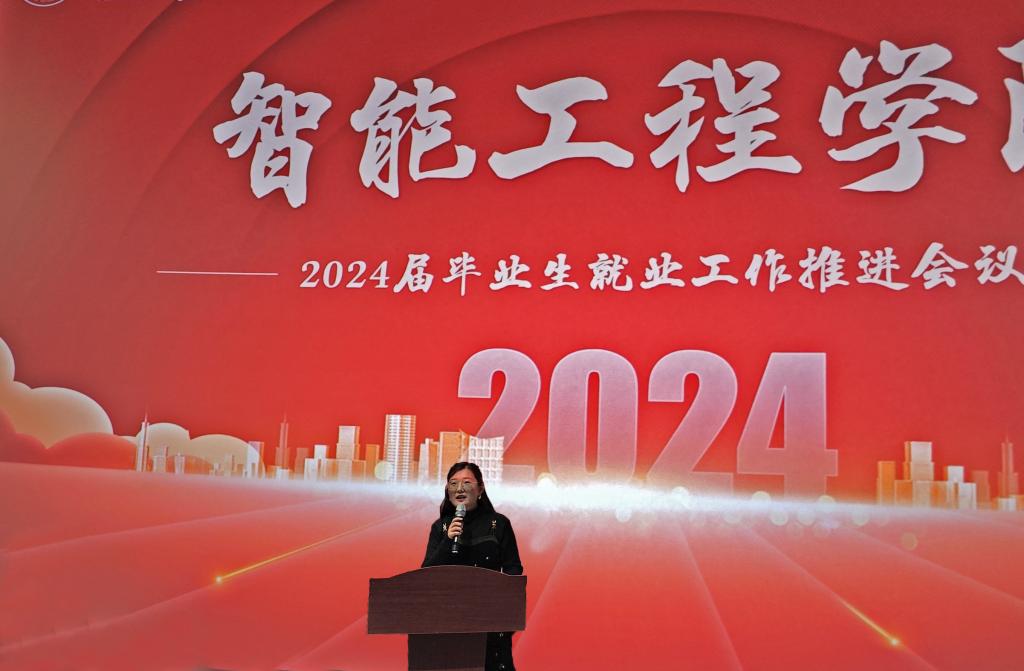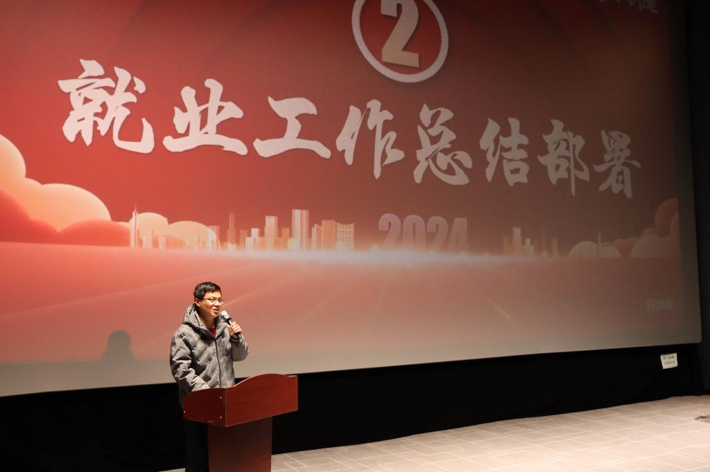 随后,张涛然院长进行2023届毕业生就业工作总结和2024年就业工作整体部署。在提到2024届就业工作时,做出四点要求:1.要认清就业形势,坚定就业信心;2.要责任明确,严格落实国家、学校关于就业工作的相关规定;3.要拓宽就业渠道,增加就业岗位;4.加强学院内涵建设,提升就业竞争力。