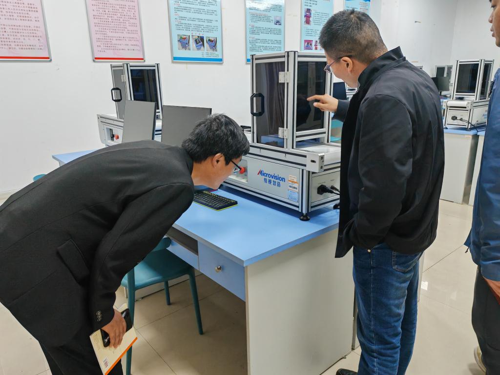 在华宇工学院,张院长一行受到了机械工程学院副院长乔华英、实验室主任孟凡召等的热情接待。他们参观了华宇工学院的智能制造综合实训室、机器人编程与操作实训室以及新能源车辆实验室等专业实验室,这些实验室设施先进,配备了最新的设备和技术,为学生提供了良好的学习和实践环境。
