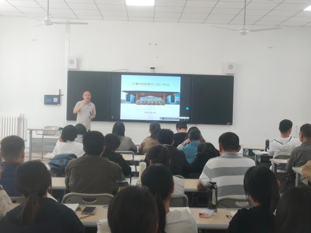 随后,由贺延周老师进行教师公开课分享。贺老师以“51单片机的并行I/O口—P0口”为授课内容,以P0口为例深入讲解了其基本工作原理,并讲授了51单片机在实际中的应用。