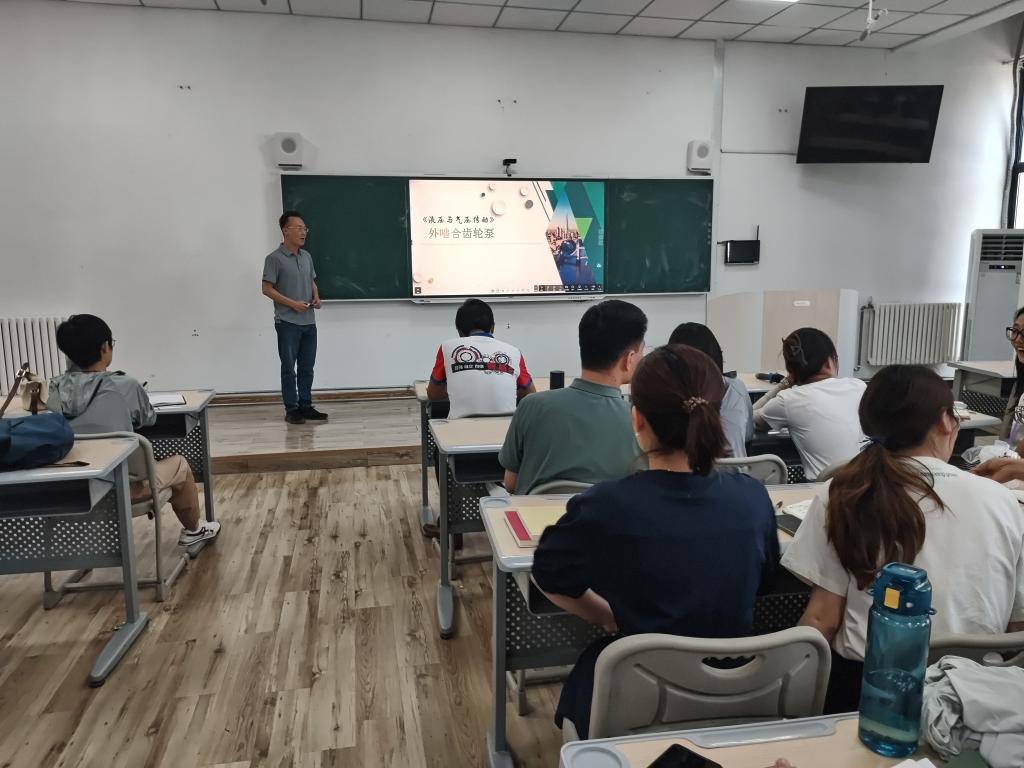 会议第二项由机械工程教研室张磊老师讲授了本期公开课。张老师选择了《液压与气压传动》课程的“外啮合齿轮泵”为授课内容。课堂上,张老师通过一个小实验-针管实验引出液压泵的工作原理,通过视频动画及生活案例来加深学生对知识的理解,知识难度深入浅出,展现了一堂完整的公开教学课。