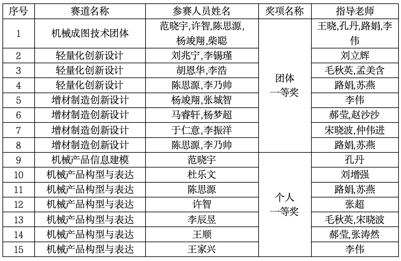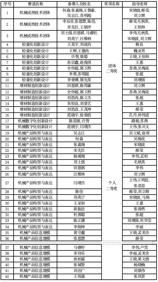 表2第十七届全国大学生先进成图技术与产品信息建模创新大赛山东省省赛