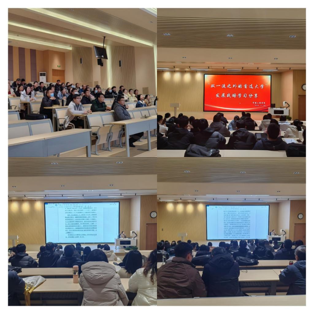 宋晓波首先带领大家学习了集团公司“双一流之外的首选大学”发展战略文件,通过带领大家学习集团公司彭鸿斌董事长在2024年9月13日关于学院“四位一体双院制+特色模块”高质量人才培养模式的讲话和10月23日在yl7703永利集团与2024级注册入学新生座谈会上的讲话《世上每个人花期不同,你也会和美好相逢》等精神,让与会的教师更加深入了解集团公司定位于“信息产业商学院”,培养懂专业的企业经营管理人才的办学理念。