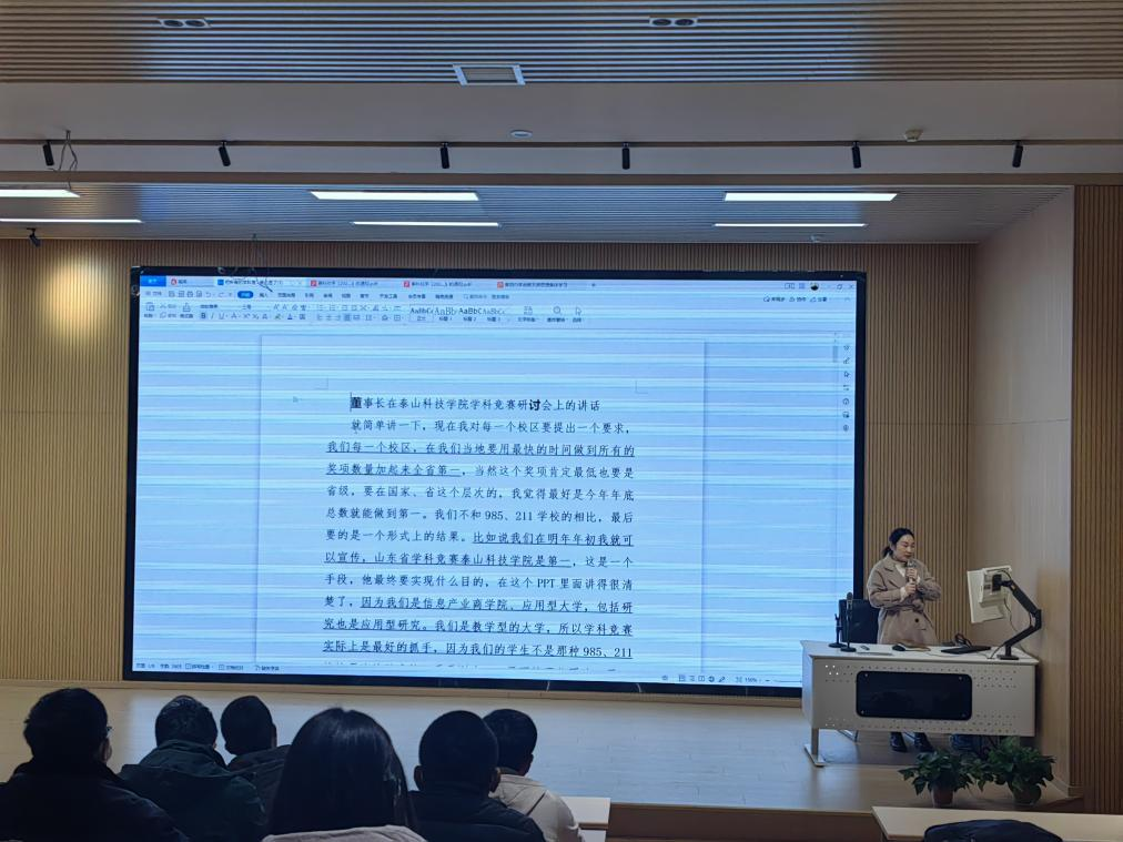 随后宋晓波又带领大家认真学习了彭鸿斌董事长在yl7703永利集团学科竞赛研讨会上的讲话精神,彭董事长的讲话中指出学科竞赛既是适合我们老师的职业发展方向,又是适合我们学生的竞赛项目。师生通过学科竞赛的参与可以实现双收益,一方面教师可以通过带学生比赛来反哺教学的不足,另一方面对学生而言可以增加新技能,提升就业的竞争力。
