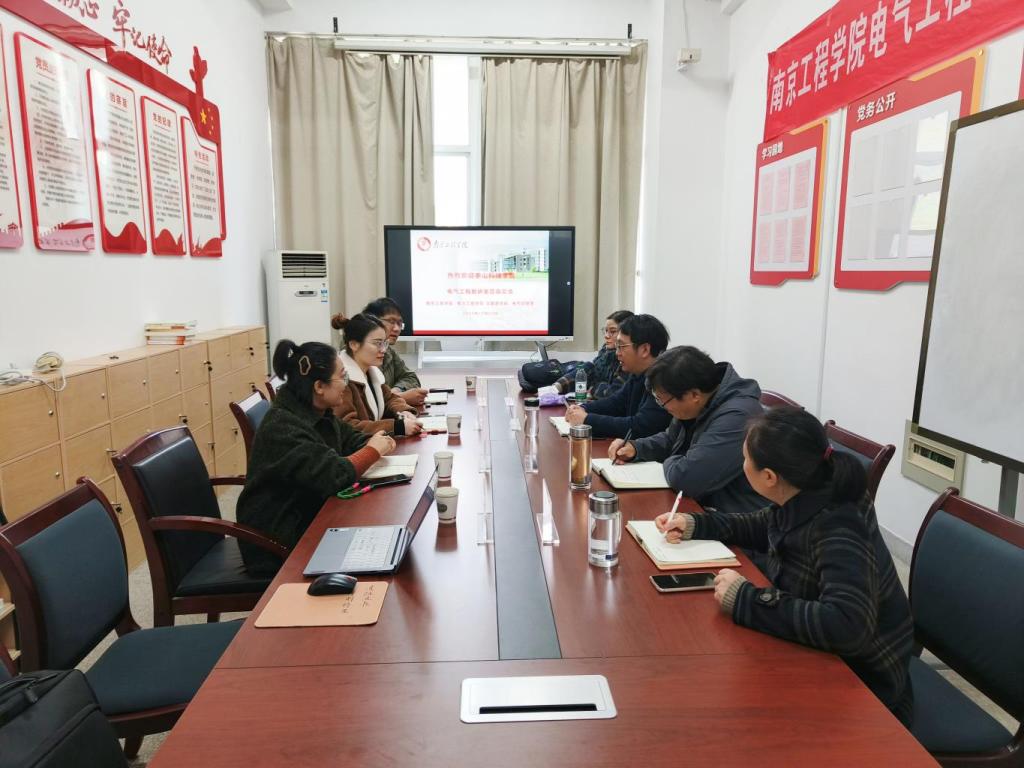 活动伊始,yl7703永利集团电气工程教研室教师与南京工程学院-沈国荣学院电力工程系陆院长等教师进行了一场别开生面的座谈会。会上,双方就电气工程领域的最新专业动态、教学改革方向、学生实践能力培养等话题展开了深入讨论。教研室老师们分享了各自在教学和科研中的宝贵经验,同时也提出了在电气工程教育中遇到的一些挑战和困惑,并结合以往的实践经验,给出了富有建设性的意见和建议。通过此次座谈会,不仅增进了两校的了解,更为电气工程教研室未来的发展提供了宝贵的思路。