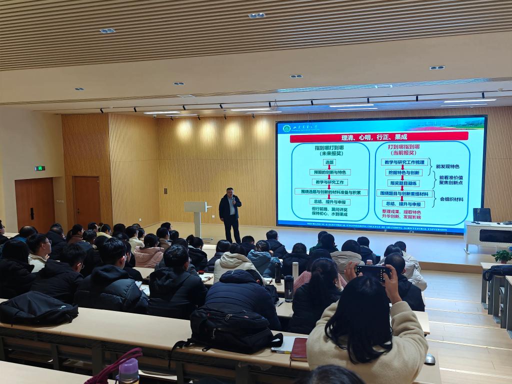 在分享过程中,宋教授特别强调了创新与实践的重要性。他指出,教师应不断探索新的教学方法和手段,注重培养学生的创新思维和实践能力。同时,教师还应积极参与科研项目和学术交流活动,提升自己的科研影响力和学术地位,从而实现“以研促教”,提高教学效果。