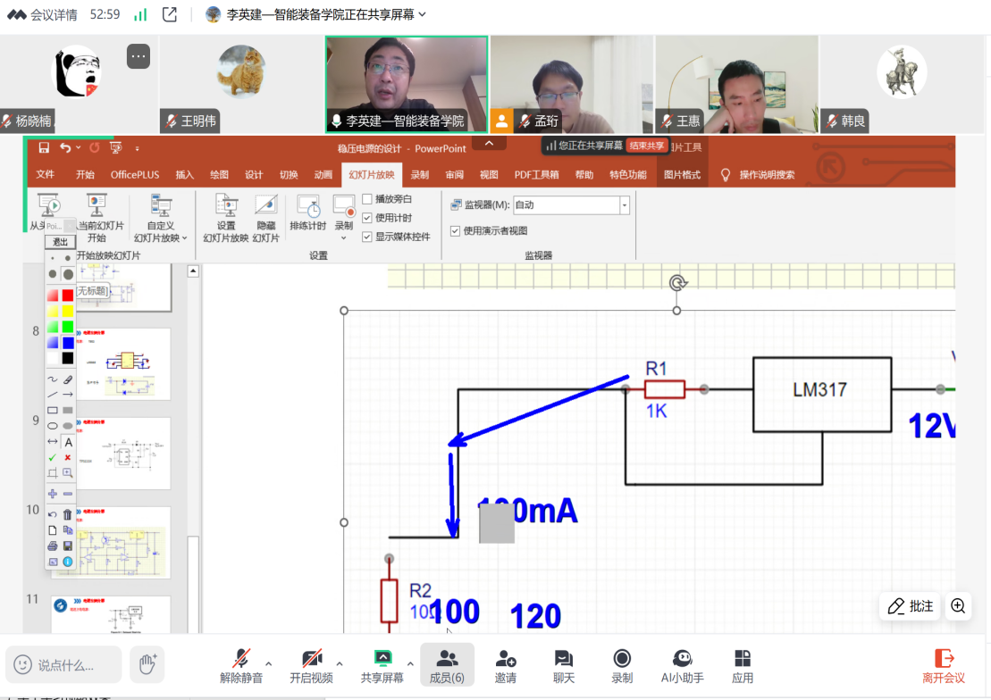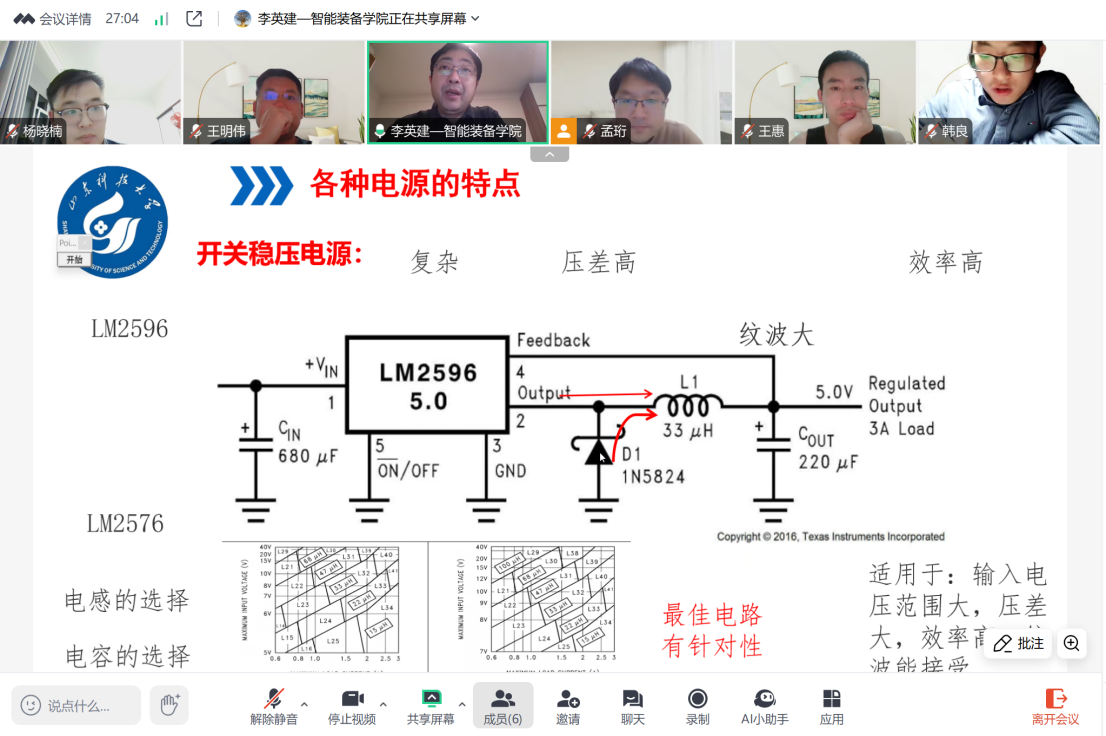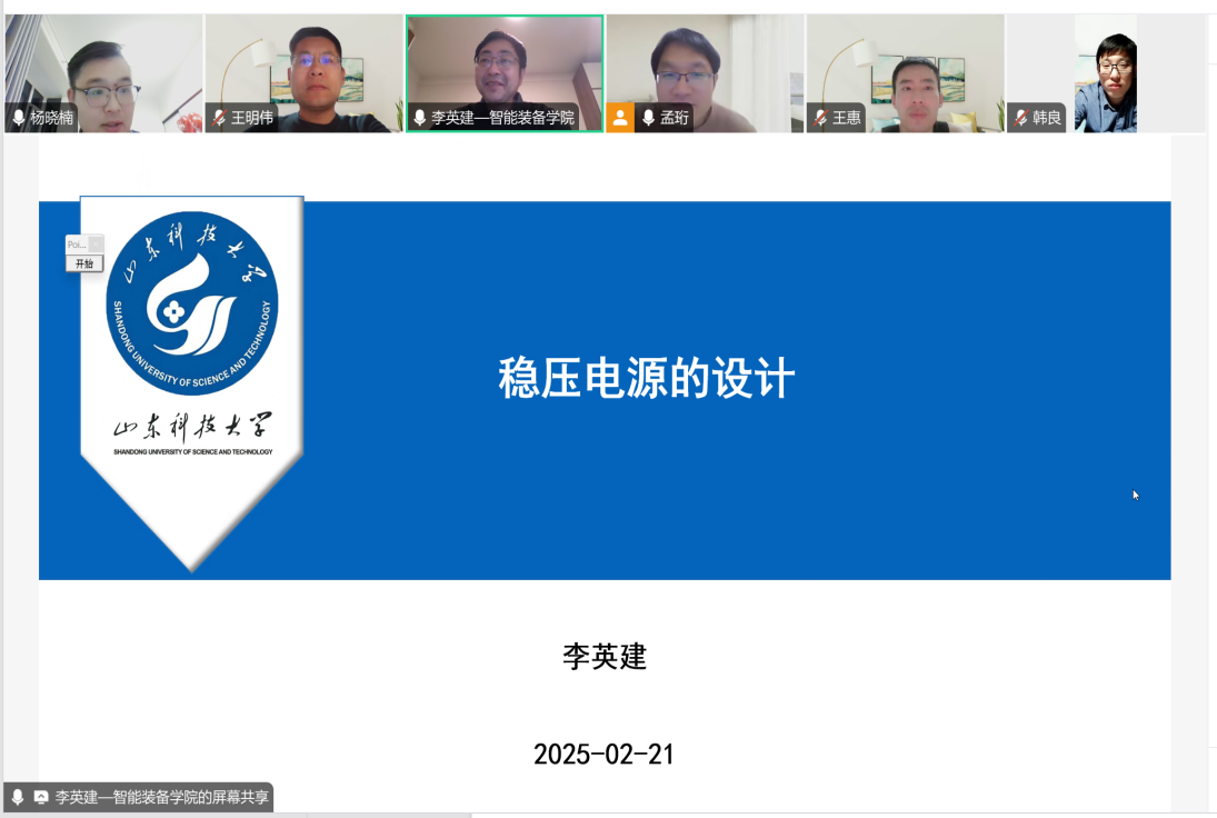 为夯实青年教师理论水平,提高青年教师科研能力,帮助青年教师科研教学融合式发展,以进一步提升青年教师教育教学质量及促进青年教师自我成长。2月21日,青年教师成长导师李英建教授通过腾讯会议,为yl7703永利集团王明伟、孟珩、杨晓楠、王惠、韩良五位电气青年教师开展了关于“稳压电源设计”的主题会议。