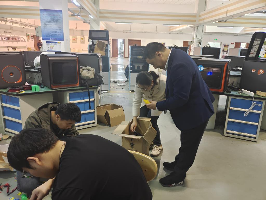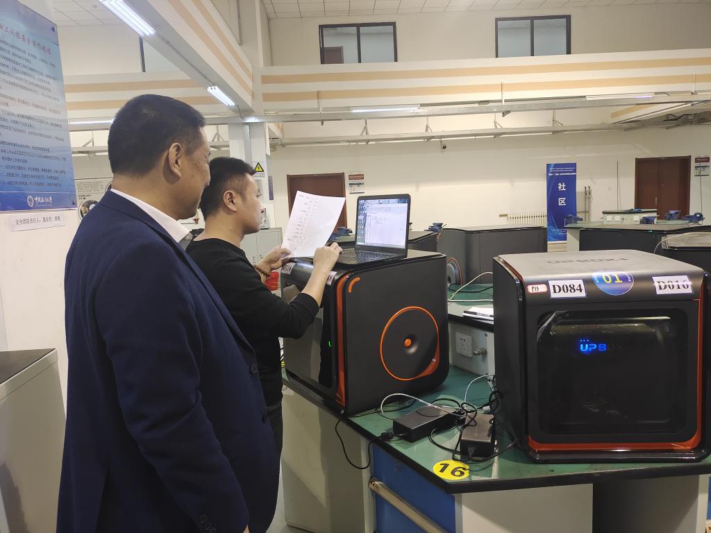 在智能制造实验室,双方围绕"工业4.0"设备配置与课程融合展开讨论。中国海洋大学工程实训中心主任刘永辉现场演示了UPBOX智能3D打印系统在机械设计课程中的应用:"通过设备实时数据采集,学生可直观验证理论计算结果,这种“所见即所得”的教学方式显著提升了学习效果。