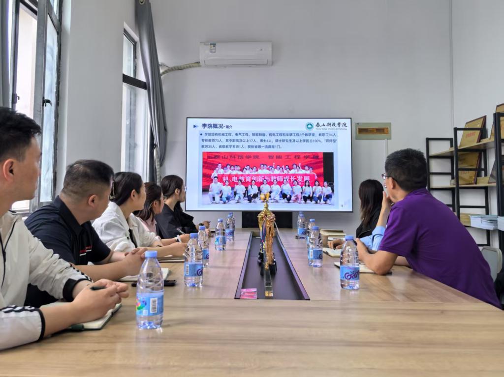 会上,张涛然院长对学院整体情况进行全面介绍。在学院基本建设方面,学院师资力量雄厚,生源构成多元,专业规模不断扩大,形成了以机械类、电气类、自动化类为主,“四位一体”的专业发展格局。教学成果丰硕,专业建设成果显著,机电一体化专业成功获得德国专业认证,同时大力推进在线课程建设,已建成五门在线课程;实验室建设成绩斐然,现有18个实验室,为教学与科研提供了坚实保障。