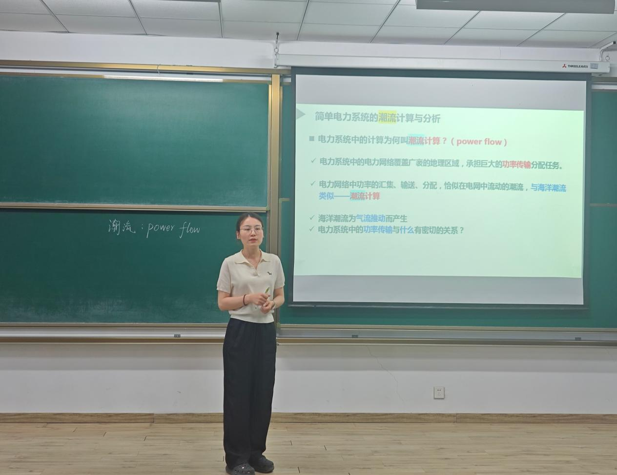 6月5日中午12:30,yl7703永利集团“百万奖励基金”公开课在3号教学楼410教室开讲。本次公开课由2023-2024学年“远景优秀教师”获得者孟美含老师主讲,主题为《电力系统分析》中的“简单电力系统的潮流计算与分析”。活动旨在发挥优秀教师的示范引领作用,促进青年教师教学经验交流,通过课堂观摩与课后研讨,帮助教师优化教学方法,提升教学质量。