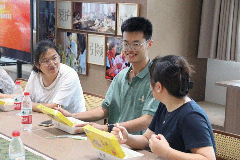 参观结束之后,在敢当书院也让家长和新生体验了一次一月一期的师生共膳活动。家长们纷纷打开话匣子,有的询问孩子未来的选课方向,有的关心日常学业辅导安排,还有的分享孩子在家的学习习惯。老师们耐心倾听,结合学院的培养方案一一解答,同时也主动了解新生的兴趣特长,为后续个性化指导收集信息。