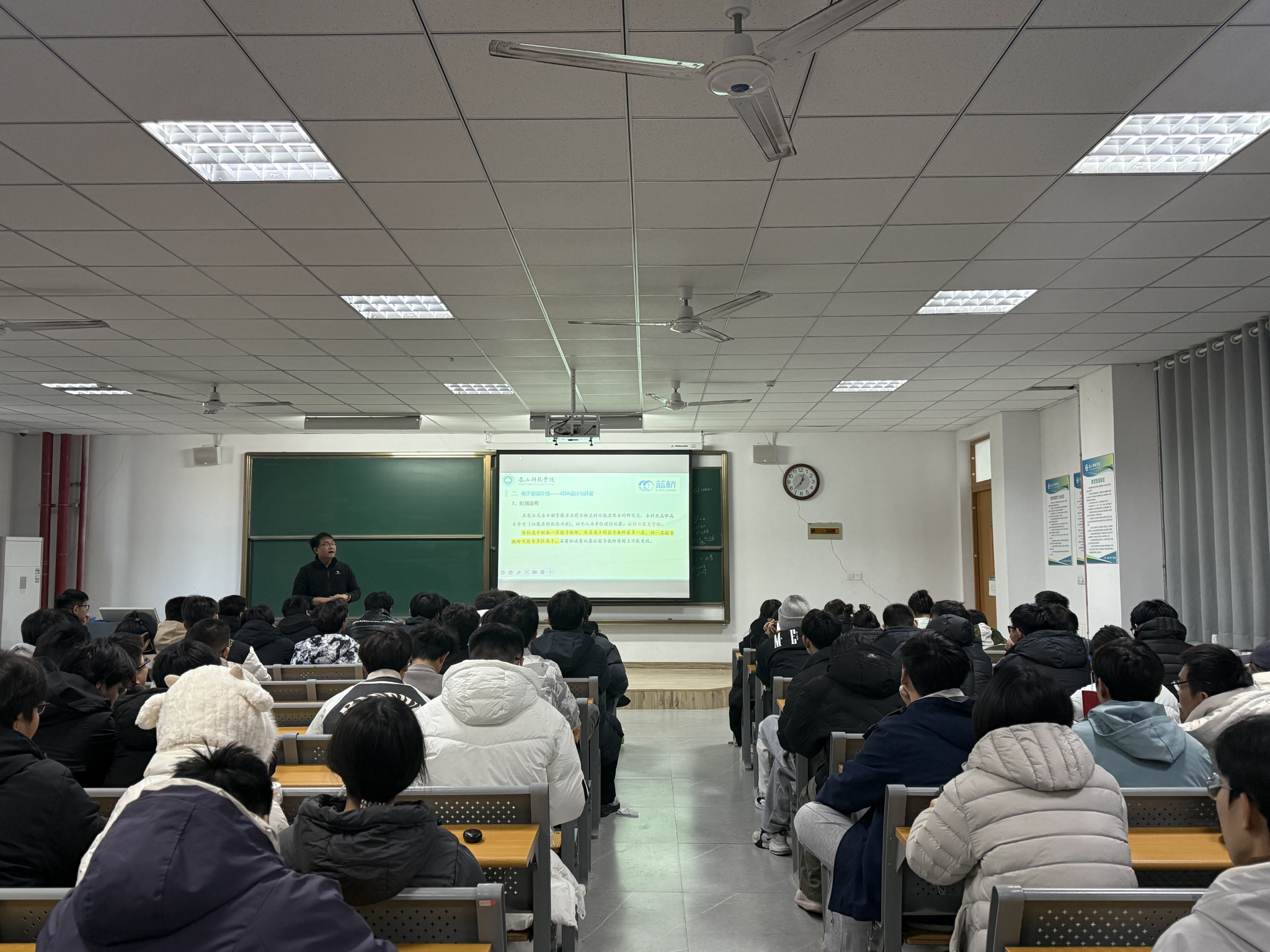 随后,孟老师重点围绕电子赛项展开宣讲,系统介绍了竞赛组别、参赛对象、竞赛形式、赛题结构及评分办法。电子赛分为大学组和职业院校组,采用“客观题+硬件程序设计题”的考核模式,内容涵盖C语言程序设计、模拟/数字电子技术、单片机开发、嵌入式系统应用及工程问题解决能力等多个方面。竞赛采用封闭限时方式进行,全程禁止访问互联网,强调选手的独立开发与实时调试能力。同时,孟老师根据大家目前不同赛道的训练现状,给予了不同的建议,明确了同学们当前学习阶段的任务。最后宣讲环节中,孟珩老师为现场的参赛学生和指导教师介绍了“蓝桥杯”大赛报名所要准备的材料及报名的方式,孟老师从大赛平台的注册、学生身份及院系认证、报名信息提交等方面进行了介绍。