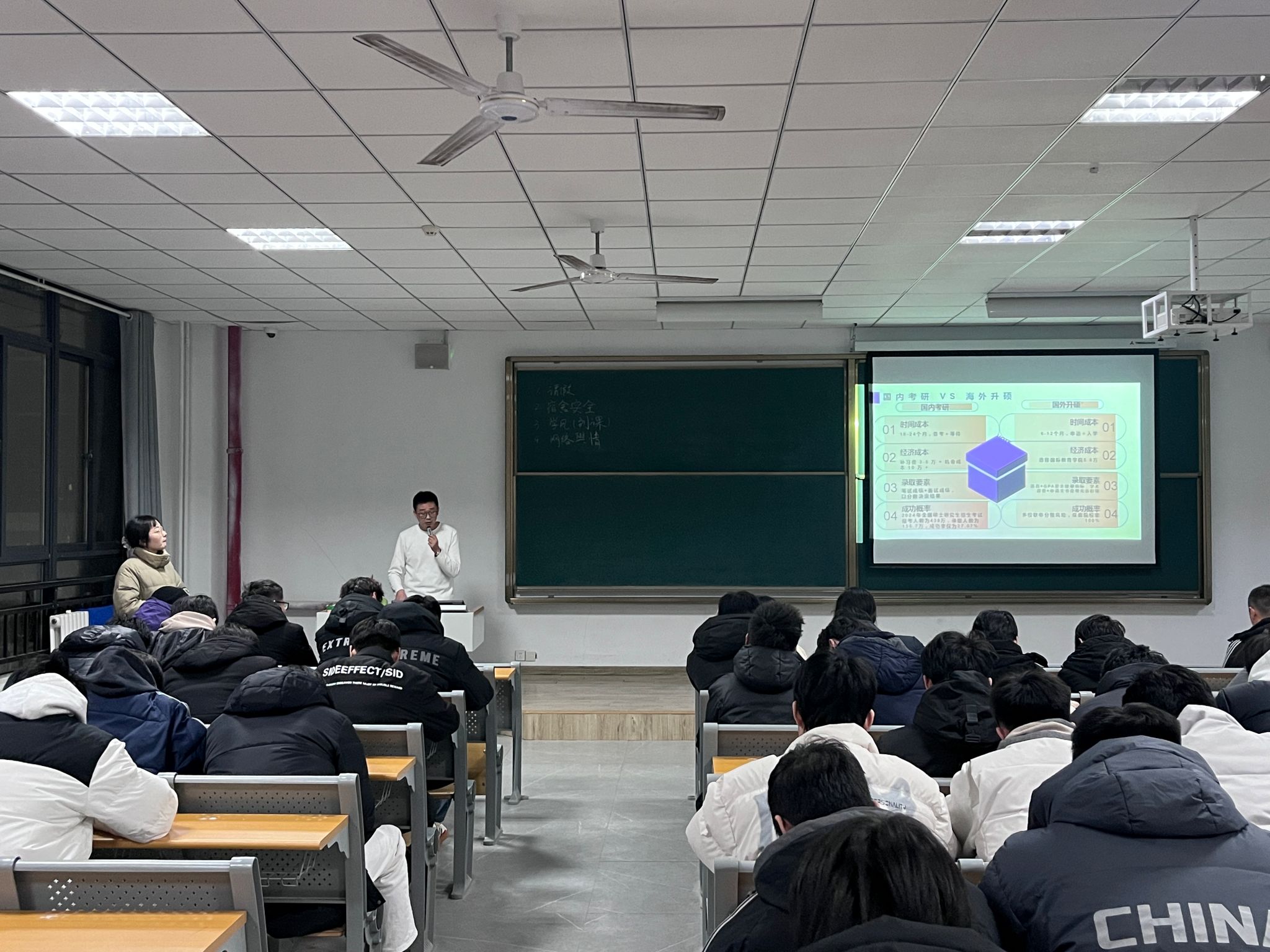 国际教育学院陈子涵老师给同学们做留学宣讲时,对比国内外考研的不同,为同学们提出关于留学规划申请的介绍,以及针对工科生的学术能力提升、语言备考指导、海外院校申请保障等配套支持。