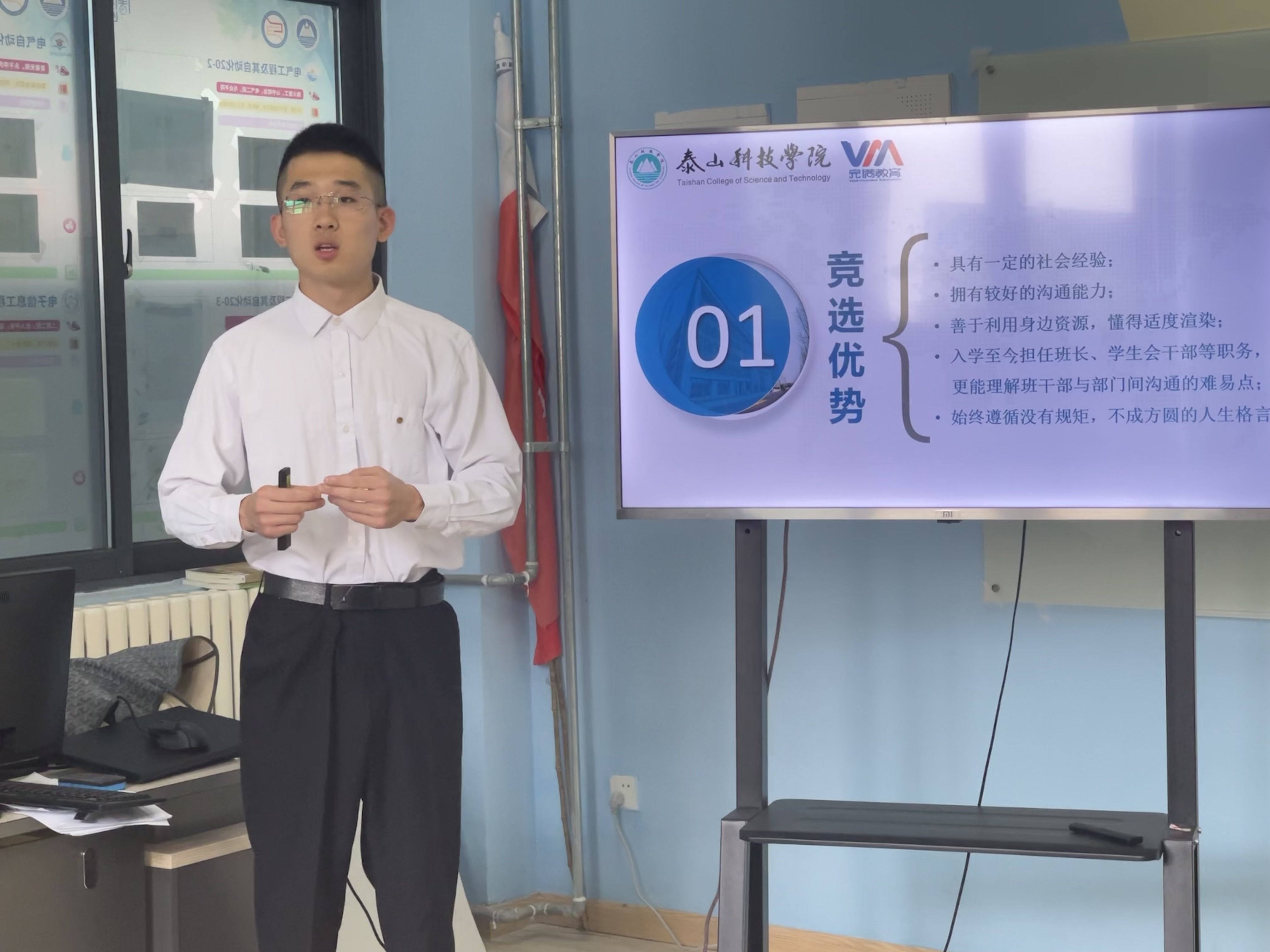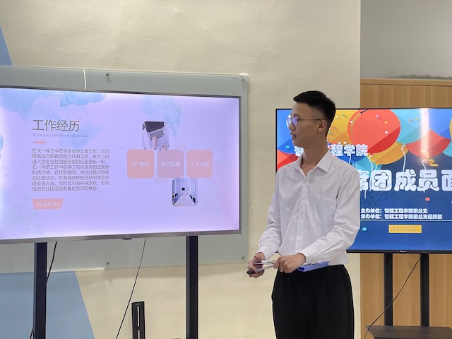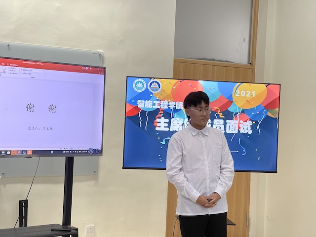 面试中,九名候选人分别阐述了自己对主席团的向往,个人竞选优势,以及加入主席团后的工作安排部署。在面对评委老师提问:现在学生会最大的问题是什么时,杜文浩同学回答道:“因为目前学生会无主席团,各部门更像是独立的个体,学生会整体性不足。”他坦言:“现在学生会内部的凝聚力还有欠缺,我认为学生会的工作分工不分家,应尽我们最大的努力,把我们的想法一一实现。”