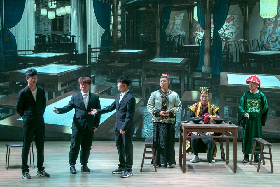 《薪火相传,大咖与我》跨时代的商业大咖的舞台剧,开启了一场古代商业传奇人物与现代信息产业大咖的思维碰撞。剧中将当代雷军、罗永浩、姚忠良三位企业家穿越与古代优秀商人范蠡、沈万三、胡雪岩三人进行跨时空的交谈。寄语青年在时代趋势下,人人得而有志,让商业文化迸发活力的美好愿景,促进新时代青年泰科学子的商业思想,学习阅读大咖的成长与经历,将自身对书籍的理解融入舞台,为观众们呈现了不一样的大咖之旅。
