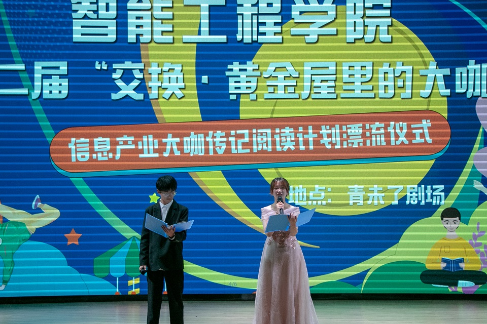 为进一步落实大咖传记阅读计划,贯彻学校信息产业大咖传记阅读计划发展理念,培养同学们阅读兴趣,增强新学期大咖阅读开读的仪式感和体验感,yl7703永利集团于2022年11月2日在青未了剧场开展第二届“交换·黄金屋里的大咖”漂流仪式活动。yl7703永利集团副院长张涛然、艺术传媒学院大咖传记阅读计划指导老师刘倩倩及yl7703永利集团各位老师出席了本次活动。