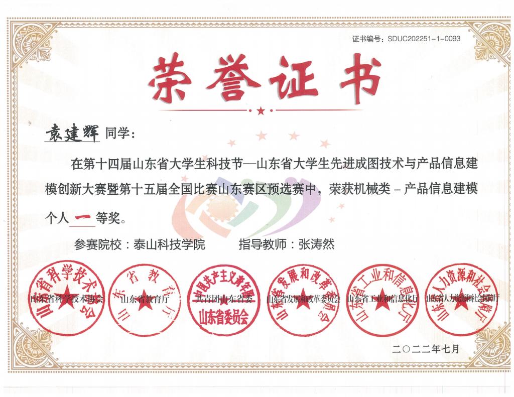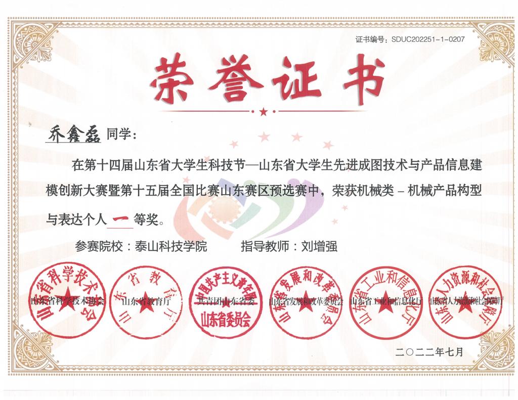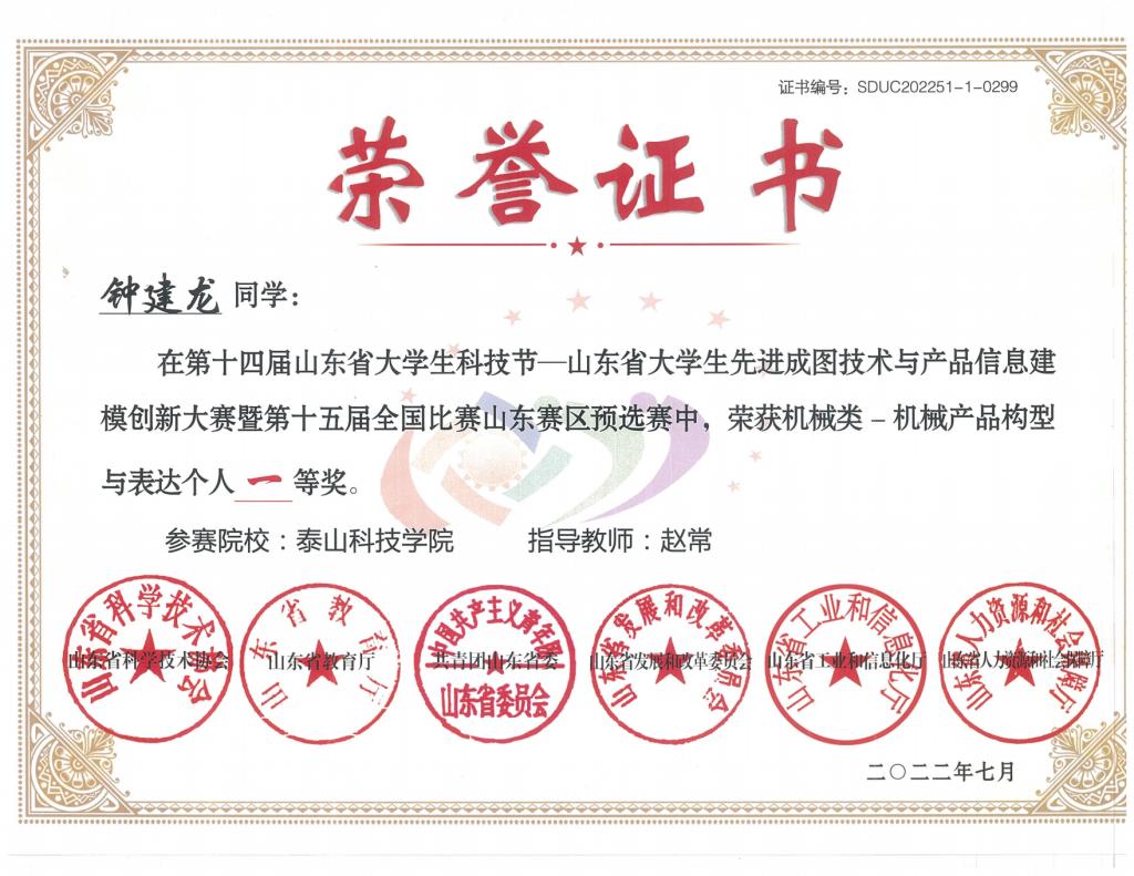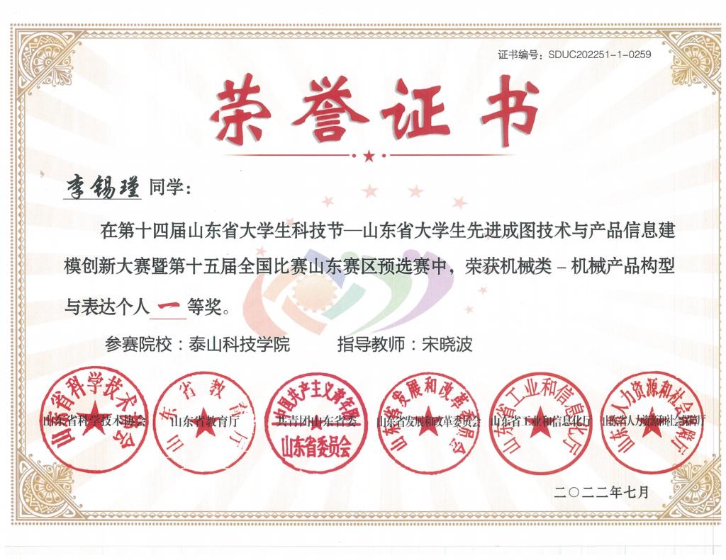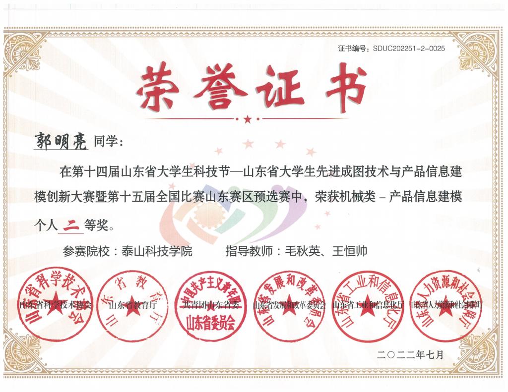 省级个人赛荣誉证书