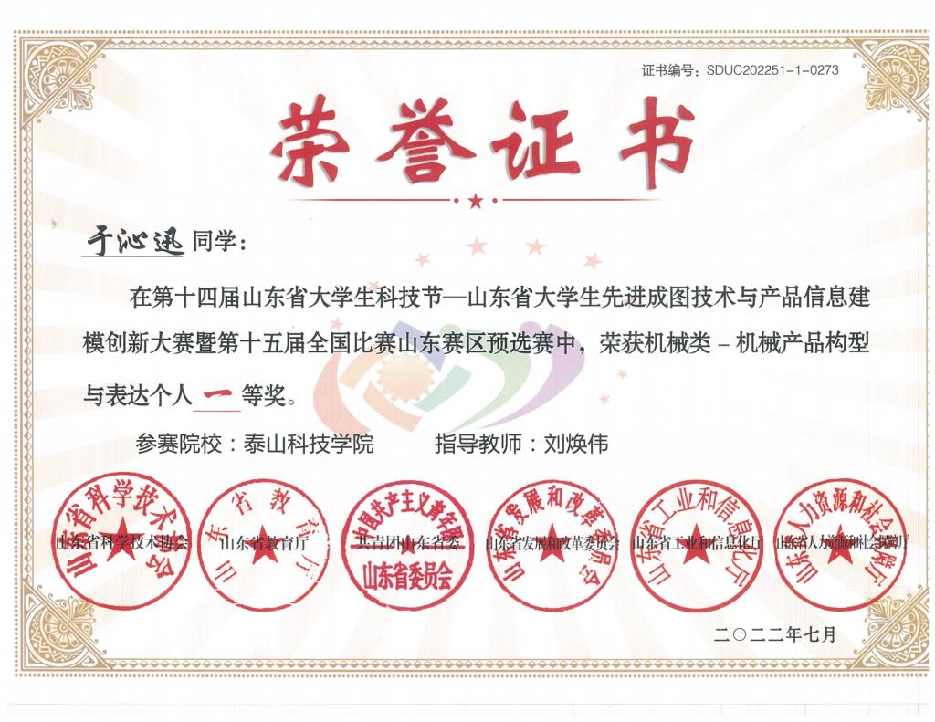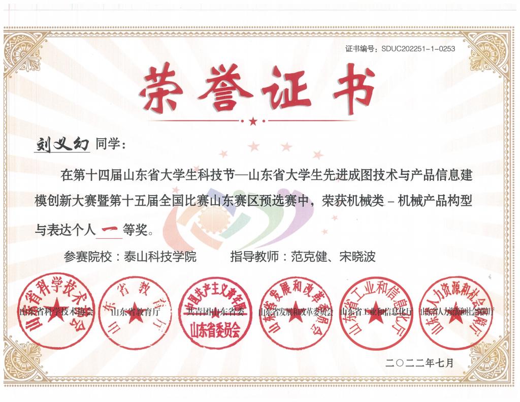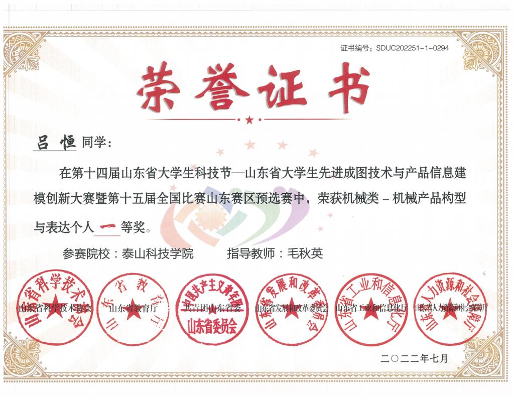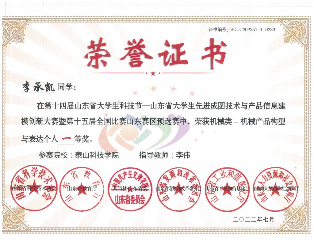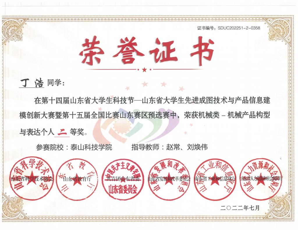 省级个人赛荣誉证书